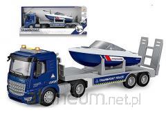 Ciężarówka Z Drewnem Niebieska Tir Przyczepa 1:24 Bale Drewna Dźwięki Światła Model ciężarówki z naczepą to realistycznie odwzorowany pojazd w skali 1:24, wyposażony w liczne funkcje, które zapewniają fascynującą i interaktywną zabawę. Model dokładnie odwzorowuje rzeczywisty pojazd w skali 1:24, co pozwala na precyzyjne zobrazowanie detali i proporcji. Kabina ciężarówki jest w kolorze niebieskim, co nadaje pojazdowi nowoczesny i elegancki wygląd. Przyczepa jest brązowa, co nawiązuje do naturalnych kolorów drewnianych kłód i zwiększa realizm modelu. Naczepa ma odpinane boki, co ułatwia załadunek i rozładunek towarów oraz zwiększa możliwości zabawy. Na przyczepie znajdują się cztery pachołki drogowe, które mogą być używane do symulacji prac na drodze lub innych sytuacji wymagających zabezpieczenia terenu. Model zawiera dwie beczki, które mogą być używane jako ładunek do transportu różnych materiałów. Przyczepa jest załadowana kłodami drewna, co umożliwia symulację transportu materiałów budowlanych lub leśnych. Ciężarówka posiada napęd, który pozwala na samodzielne poruszanie się modelu. Przyczepa jest odpinana, co umożliwia oddzielne korzystanie z kabiny ciężarówki i przyczepy, zwiększając możliwości zabawy. Po naciśnięciu kabiny, model wydaje realistyczne dźwięki, takie jak odpalanie silnika i dźwięki cofania, co zwiększa autentyczność zabawy. Model posiada również efekty świetlne, które włączają się po naciśnięciu kabiny, co dodatkowo uatrakcyjnia zabawę. Model ciężarówki z naczepą w skali 1:24 to wszechstronna i realistyczna zabawka, która łączy funkcjonalność z dokładnym odwzorowaniem rzeczywistego pojazdu. Dzięki szarej kabinie, brązowej przyczepie z odpinanymi bokami, napędowi, odpinanej przyczepie oraz efektom dźwiękowym i świetlnym, dzieci mogą rozwijać swoją wyobraźnię i uczyć się zasad logistyki oraz bezpieczeństwa drogowego. Załadunek w postaci pachołków, beczek i kłód drewna dodatkowo zwiększa atrakcyjność i edukacyjny walor zabawy. Wymiary ciężarówki: 38 cm x 7 cm x 7 cm Cena dotyczy jednej sztuki, w opakowaniu zbiorczym znajdują się 4 ciężarówki. Posiada certyfikat CE, ponadto jest zgodny z normą EN71. Przeznaczony dla dzieci powyżej 3 roku życia.