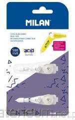 Kompaktowy i nowoczesny produkt 2w1, łączący korektor i klej w taśmie. Korektor w taśmie: 4 m długości, doskonała jakość krycia. Klej w taśmie: 3 m długości, nie brudzi rąk, bezbarwny i supermocny, łatwy w aplikacji. Do wyboru w 4 gradientowych kolorach obudowy. 12 szt. w displayu.