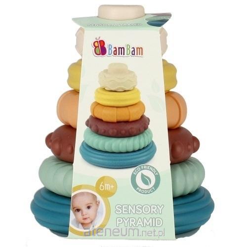 Okręgi EDUKACYJNEJ PIRAMIDKI PASTELOWEJ doskonale sprawdzają się w pierwszym okresie nauki sortowania i ćwiczenia zdolności motorycznych. Układanie kaskadowe okręgów, a następnie potrząsanie nimi dostarcza dziecku wielu radości i aktywizuje go do działania. Zróżnicowana faktura i nieregularna powierzchnia oraz kształt okręgów dodatkowo wzbogaca doznania dotykowe wpływając na intensyfikacje zmysłu dotyku. Pastelowe kolory stymulują zmysł wzroku i percepcji, zabawka doskonale rozwija wyobraźnię i zdolności poznawcze. Wymiary/waga/baterie: wymiary produktu (dł. x wys. x gł.) [cm]: 10x12x10, wymiary opakowania (dł. x wys. x gł.)[cm]: 10x13x11, waga produktu bez opakowania [kg]: 0,22 kg, waga produktu w opakowaniu [kg]: 0,23 kg, nie wymaga zasilania bateriami. Piramidka przeznaczona dla dzieci w wieku: 6m+. Pakowana w banderoli.