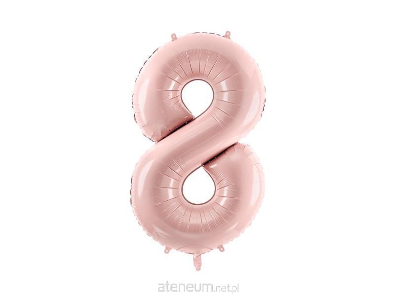 Balon foliowy pastelowy Cyfra ''8'' w kolorze jasnoróżowym , rozmiar przed napompowaniem ok. 86 cm (34''), rozmiar po napompowaniu ok. 72 cm (28''). Do napompowania powietrzem i helem. Zestaw zawiera słomkę