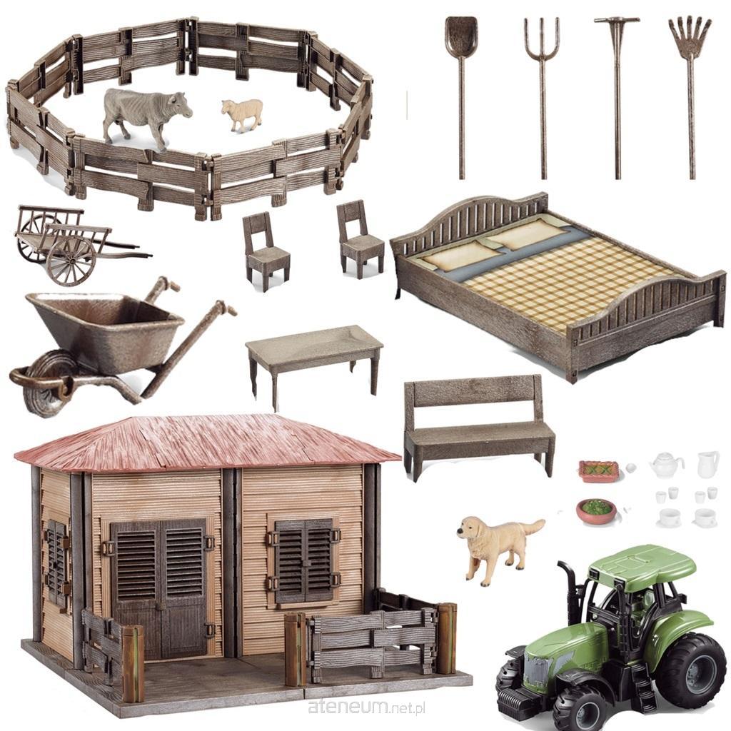 Trzy figurki różnych zwierząt można karmić, zabawiać i troszczyć się o nie. Nie zabraknie kompletu do herbaty, do przyjmowania gości! Ponadto w zestawie znajdują się meble do domku rolnika, takie jak łóżko, krzesła, ławka i stół, a także akcesoria kuchenne, takie jak talerze, kubki i dzbanek.
