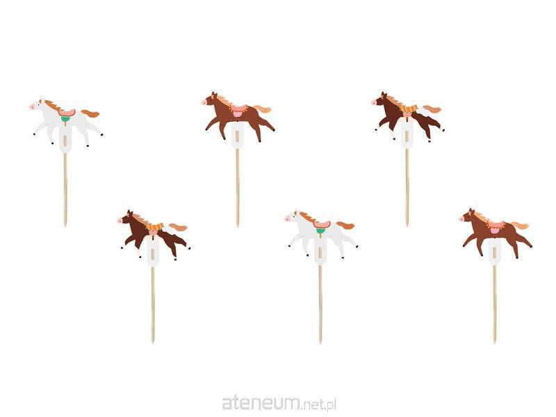 Dekoracje do muffinek - Konie, zestaw zawiera 6 elementów (3 wzory), mix kolorów, wysokość ok. 13 cm. Produkt do samodzielnego złożenia.(1 op. / 6 szt.)