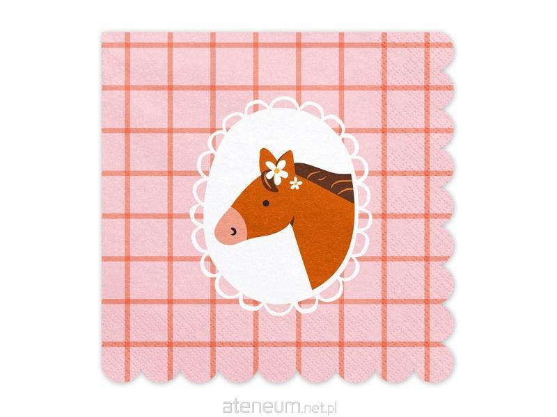 Serwetki papierowe Koń w kolorze różowym z kolorowym nadrukiem,wymiary po rozłożeniu ok. 33 x 33 cm, wymiary po złożeniu ok. 16.5 x 16.5 cm.(1 op. / 12 szt.)
