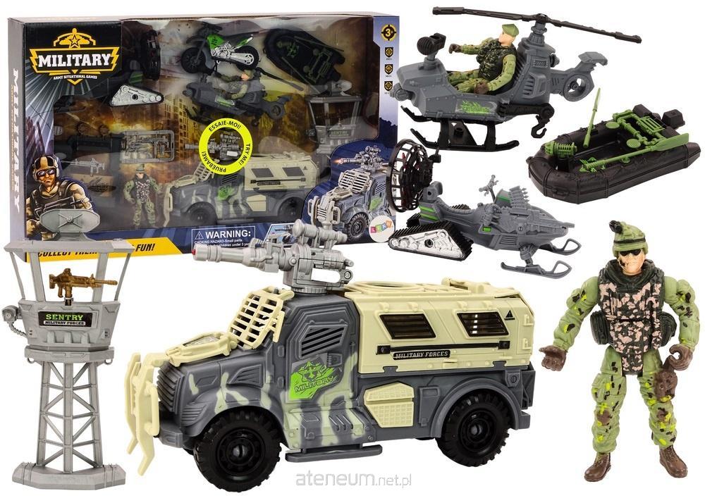 Zestaw Militarny Wojskowy Wóz Bojowy Helikopter Żołnierze Akcesoria Dźwięki Zestaw militarny wojskowo-bojowy, który dostarczy dzieciom wiele godzin emocjonującej zabawy i przeniesie ich w świat wojskowych przygód! W zestawie znajdują się figurki oraz wozy wojskowe, helikopter, który może nad polem bitwy, patrolować teren i transportując żołnierzy. Wieża kontrolna jako kluczowy element strategiczny, z którego można nadzorować całą operację wojskową. Ponton do szybkiego przemieszczania się po wodzie, idealne do akcji ratunkowych i zaskakujących ataków. Skuter gąsienicowy to zwinny pojazd do poruszania się po trudnym terenie, wyposażony w gąsienice, które zapewniają doskonałą mobilność. Dwie szczegółowo wykonane figurki żołnierzy, gotowe do działania na lądzie, wodzie i w powietrzu. Motor terenowy do szybkiego przemieszczenia się po polu bitwy, idealny do zwiadów i szybkich ataków. Imponujący wóz bojowy, który jest centralnym elementem zestawu. Na jego dachu znajduje się działo z efektami dźwiękowymi i świetlnymi, dodającymi realizmu każdej bitwie. Każdy element zestawu jest starannie wykonany z wieloma szczegółami wojskowymi, co sprawia, że zabawa staje się bardziej realistyczna. Działo na wozie bojowym wyposażone jest w efekty dźwiękowe i świetlne, które wzbogacają doznania podczas zabawy. Elementy zestawu można dowolnie łączyć, tworząc różnorodne scenariusze wojskowych operacji. Ten zestaw militarny wojskowo-bojowy to doskonały wybór dla młodych miłośników militariów. Bogactwo szczegółów i różnorodność elementów sprawiają, że każda zabawa jest inna i pełna emocji. To idealny prezent, który pobudza wyobraźnię i rozwija kreatywność dzieci! Zawartość zestawu: - wóz bojowy - helikopter - skuter gąsienicowy - wieża kontrolna - motor - dwie figurki żołnierzy - ponton - baza wojskowa - oryginalne opakowanie Wymiary opakowania: 55 cm x 33 cm x 11 cm Zgodne z normą EN71 i certyfikatem CE. Przeznaczony dla dzieci powyżej 3 roku życia.