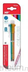 zestaw 8 kolorowych długopisów; 14,5x9x1,5cm, PVC