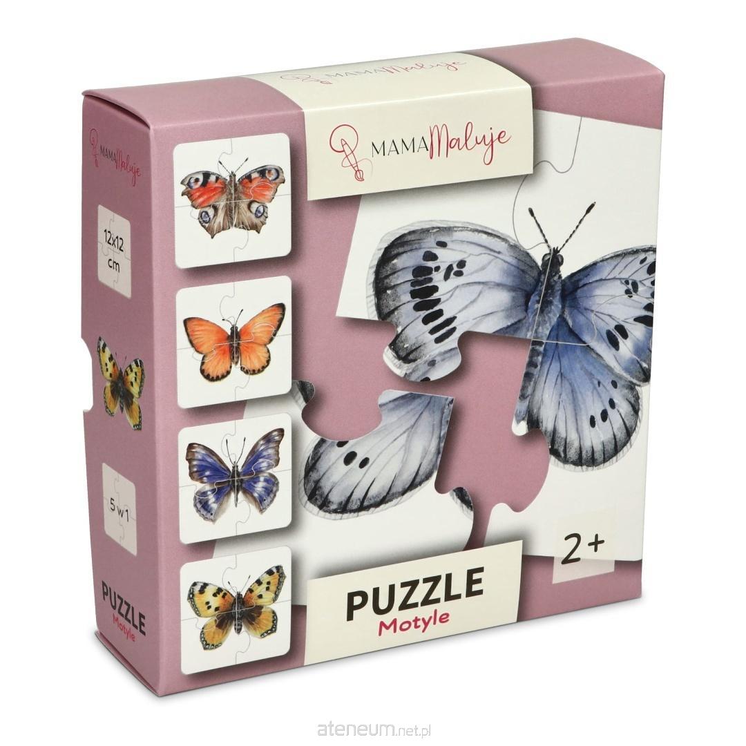 Puzzle zawierają 5 układanek 4-elementowych przedstawiających takie motyle jak: rusałka pawik, czerwończyk dukacik, mieniak tęczowiec, modraszek arion, rusałka pokrzywnik.