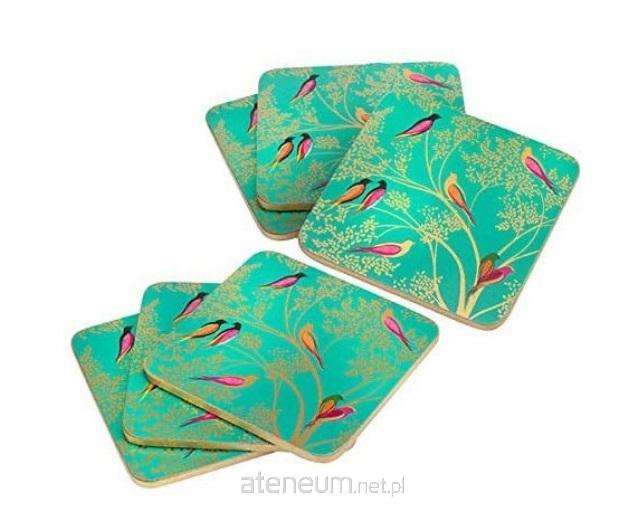 Zakochaj się w tym zestawie sześciu wyrafinowanych zielonych podkładek, prezentujących oszałamiający wzór zaczarowanego ogrodu wypełnionego ptakami i złotymi liśćmi z kolekcji Green Birds. Podkładki wykonane są z wytrzymałego korka o grubości 5 mm i całkowicie uszczelnione wysokiej jakości lakierowaną powłoką. Dzięki czemu bardzo dobrze izolują wysoką i niską temperaturę, chroniąc blaty, stoły i inne powierzchnie przez uszkodzeniem. Podkładki są odporne na plamy i wysoką temperaturę do 100 C. Należy je czyścić wilgotną gąbką. Nie zaleca się zanurzać w wodzie i wkładać do zmywarki. Zestaw zawiera: 6 szt.