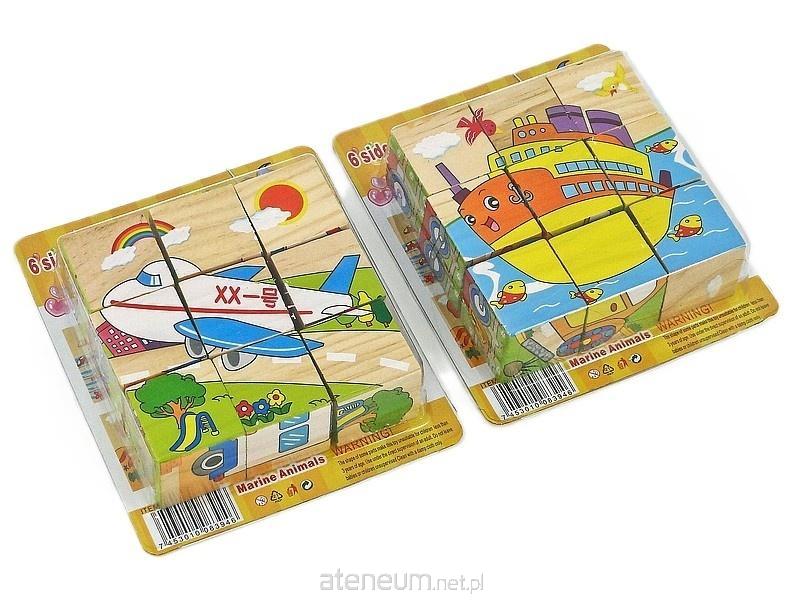 układanka - drewniane klocki z obrazkami 9szt, kwadraty 3,5cm; 15x13x4cm, B/C