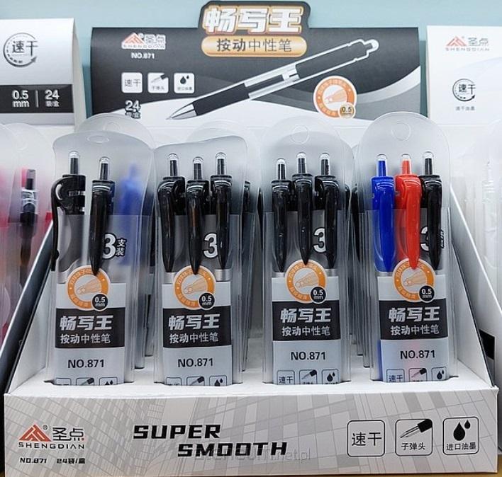 zestaw 3 długopisów, display 24 op.