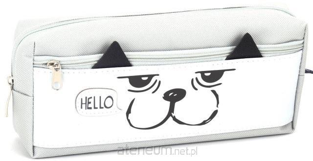 Uroczy szary piórnik z motywem psa. Posiada 2 komory zapinane na zamek. Doskonale nadaje się do szkoły.