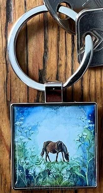 Piękny, metalowy breloczek do kluczy z oryginalnym akwarelowym wzorem.