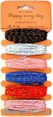 Zestaw 6 kolorowych sznurków papierowych ze złotą nicią w