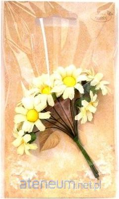 Ładne, kwiatki materiałowe, skręcone w jedną wiązkę. Można je rozłączyć i używać pojedynczo do zdobień lub użyć jako całą wiązkę.