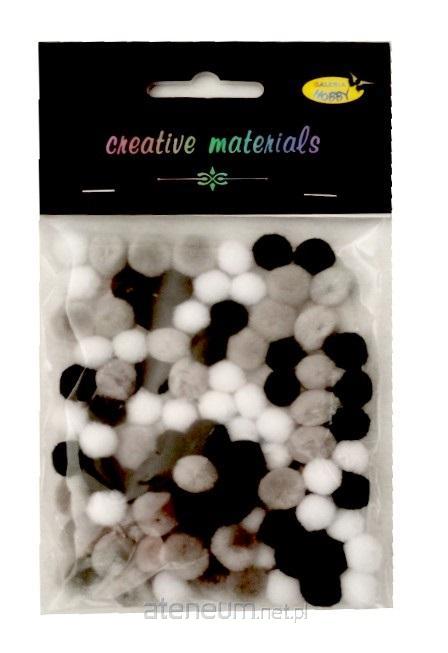 Pompony akrylowe 10mm (ok.100szt) biało-szaro-czarne - miks miękkich pomponów akrylowych