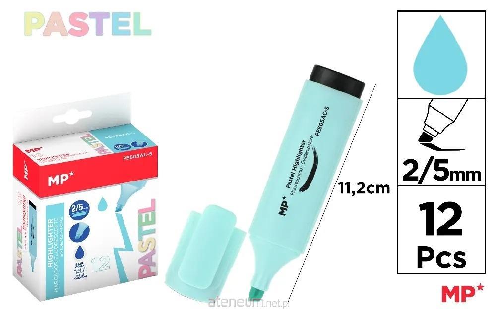Zakreślasz z plastikowym korpusem i nasadką w kolorze tuszu. Atrament o wysokiej jasności w pastelowych odcieniach, idealny do podkreślania ważnych tekstów. Tusz na bazie wody. Bardzo wytrzymała końcówka o dwóch szerokościach linii: 2i 5 mm. Kolor pastelowy niebieski.