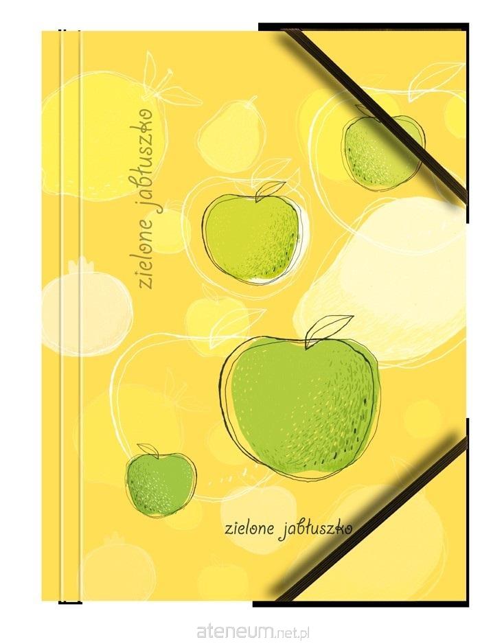 Teczka kartonowa z grafiką i gumką narożną, lakierowana, format A4. Jedna grafika - zielone jabłuszko. Gramatura: 350g. Rozmiar: 320mm/240mm