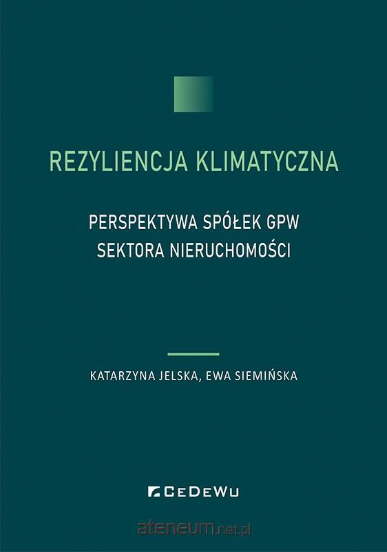 Rezyliencja, w tym klimatyczna, jest koncepcją, która rozpatrywana jest jako odporność w różnych perspektywach, miast, regionów oraz podmiotów gospodarczych. Według rankingu The World Economic Forum z 2024 r. na temat globalnych ryzyk, które w perspektywie 10 najbliższych lat są uważane za najważniejsze, na pierwszych czterech miejscach wskazano ryzyka środowiskowe, a mianowicie: ryzyko ekstremalnych zjawisk pogodowych, krytyczną zmianę warunków na ziemi, ryzyko utraty bioróżnorodności, niedobory zasobów naturalnych. Stąd też wśród wyzwań stojących przed podmiotami zarówno publicznymi, jak i prywatnymi odpowiedzialnymi za kształtowanie i gospodarowanie przestrzenią na pierwszym miejscu powinny stać cele związane z budowaniem trwałej odporności (long term resilience) i równowagi ekosystemów. Autorki podjęły próbę sformułowania koncepcji rezyliencji klimatycznej, przyjmując perspektywę realizacji celów środowiskowych spółek GPW sektora nieruchomości. Zaproponowały koncepcję rezyliencji modelu biznesowego w ramach strategii ESG 4R: (1) reduction, (2) removal, (3) repair, (4) resilience. Proponowane rozwiązania stanowią odpowiedź na zalecenia Europejskich Standardów Sprawozdawczości Zrównoważonego Rozwoju (European Sustainability Reporting Standards ESRS). " (...) "Rezyliencja klimatyczna. Perspektywa spółek GPW sektora nieruchomości" to obowiązkowa lektura dla każdego, kto interesuje się zrównoważonym rozwojem i strategiami adaptacji do zmian klimatycznych. Jest to monografia, która zasługuje na szczególne uznanie za swoją oryginalność, aktualność oraz kompleksowe ujęcie problematyki. Autorki, wnikliwie analizując spółki sektora nieruchomości i ich strategie biznesowe, dostarczają praktycznych wskazówek i innowacyjnych rozwiązań, które mogą zwiększyć odporność przedsiębiorstw na ryzyka klimatyczne. To kompleksowe i aktualne opracowanie jest nieocenionym źródłem wiedzy dla menedżerów, inwestorów, wykładowców i studentów". prof. dr hab. Anna Szelągowska, fragment recenzji
