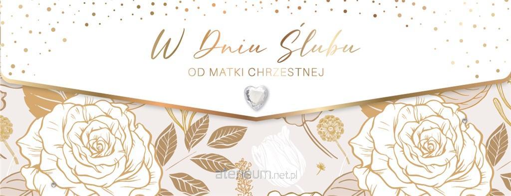 Karnet Dedykowany od Matki Chrzestnej Luksusowy karnet Ślubny z elementami złocenia lub srebrzenia, wykonany na specjalnym, grubym kartonie z licznymi dodatkami.