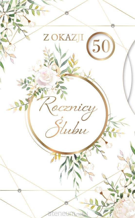 Luksusowy Karnet Rocznica Ślubu, regulowana, zakres regulacji od 5 do 60, z elementami złocenia lub srebrzenia, wykonany na specjalnym, grubym kartonie z licznymi dodatkami.