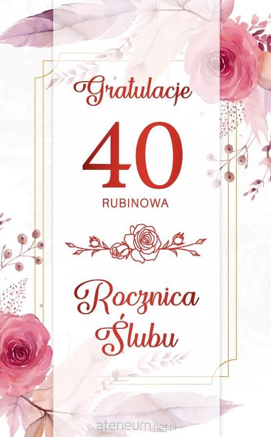 Luksusowy Karnet 40 Rocznica Ślubu, z elementami złocenia lub srebrzenia, wykonany na specjalnym, grubym kartonie z licznymi dodatkami.