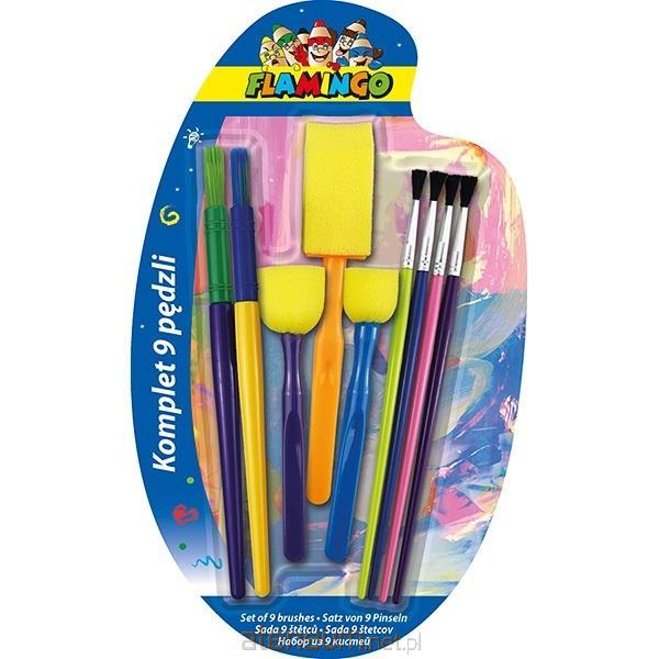 6x pędzli okrągłych syntetyczne włosie, 1x gąbkowy płaski szerokość 25mm, 2x gąbkowy okrągły O20/25mm