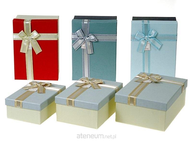 Pudełko prostokątne z kokardą 3szt czerw ROZETTE