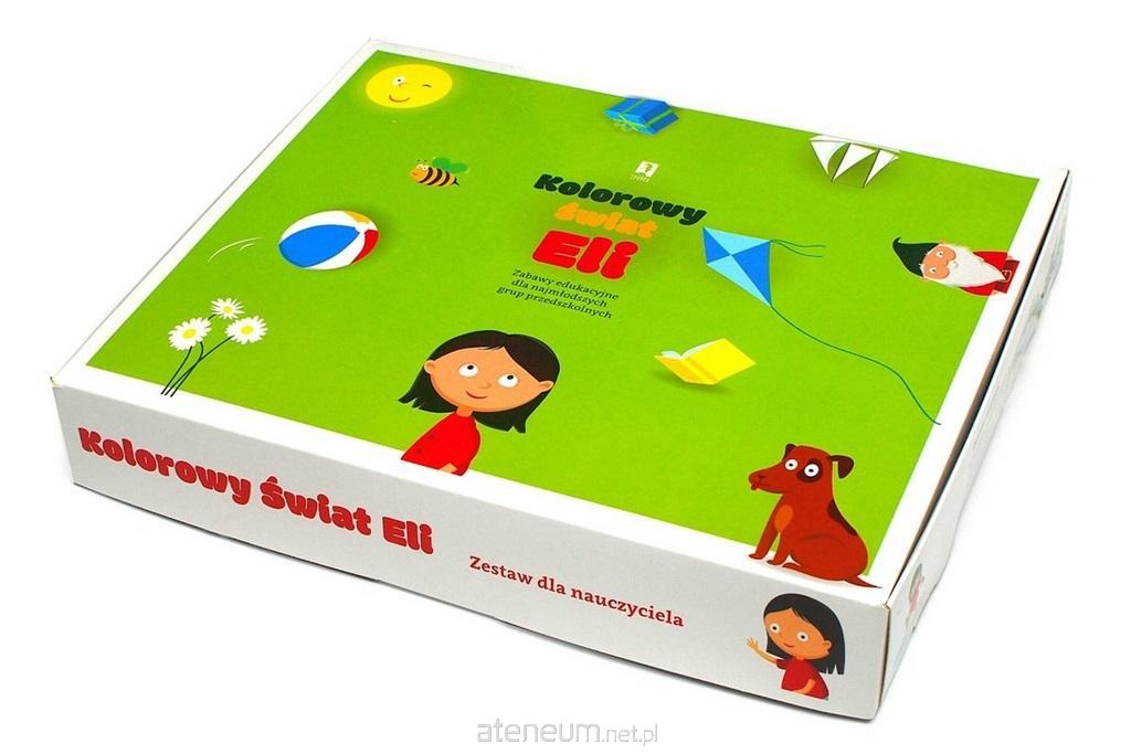 4 plansze edukacyjne+4 wielkoformatowe gry planszowe+przewodnik dla nauczyciela zawierający propozycje i instrukcje gier .Autor: Małgorzata Łobocka Kolorowy Świat Eli zestaw dedykowany dzieciom trzy i czteroletnim.