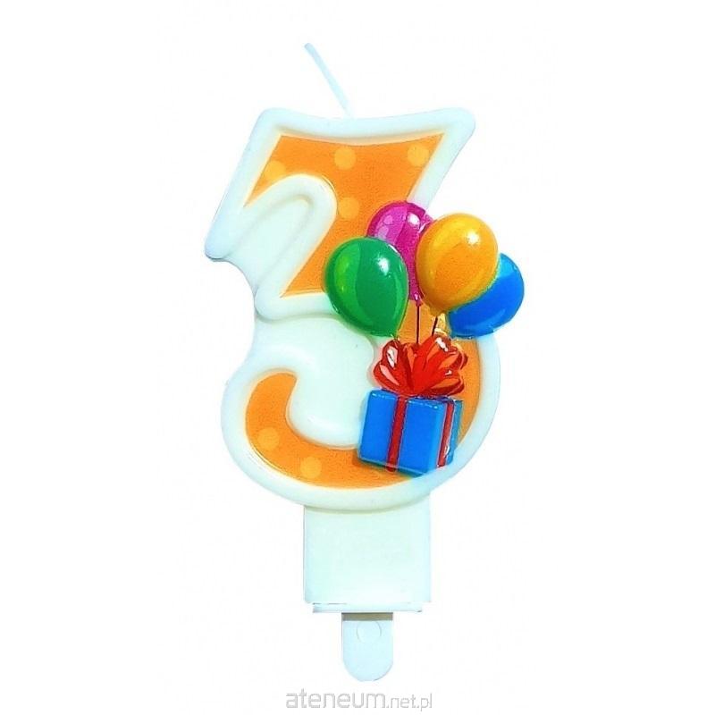Świeczka urodzinowa 3 z balonami