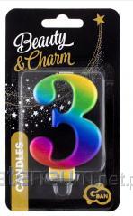 Świeczka cyferka 3 Beauty&Charm Galaxy 8cm