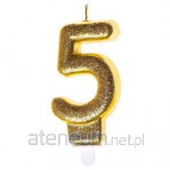 Świeczka urodzinowa 5 złoty brokat