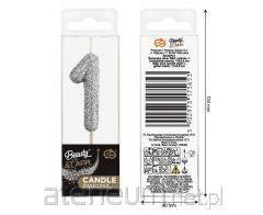 Świeczka piker 1 czarna brokatowa 11x3.5 cm