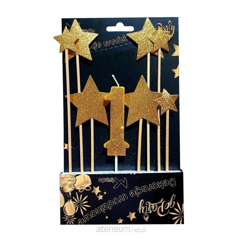 Dekoracja urodzinowa - świeczka i gwiazdy 8szt