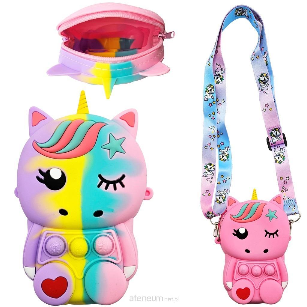 Torebka jednorożec zapinana na zamek. Wykonana z silikonowego materiału w pastelowych kolorach.