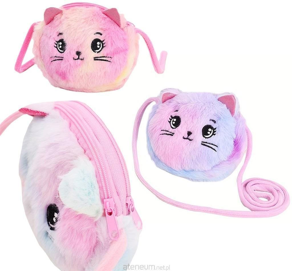 Torebka kotek zapinana na zamek. Wykonana z pluszowego materiału w pastelowych kolorach.