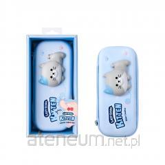 Piórnik prostokątny z 2 komorami zapinanymi na suwak. Kolor zielony z granatowym wzorem foki. Kolekcja 460 inspirowana oryginalnymi kolorami i wzornictwem gumek MILAN, produkowanych w Hiszpanii od 1918 roku. Z małą wewnętrzną kieszenią z przodu i dużą komorą główną z niebieskim zamkiem błyskawicznym. Niebieska wzorzysta podszewka wewnętrzna. Skład materiału zewnętrznego: 100 % poliuretan. Skład wewnętrznej podszewki: 100% poliester. Wymiary: 21 x 8,5 x 6,1 cm