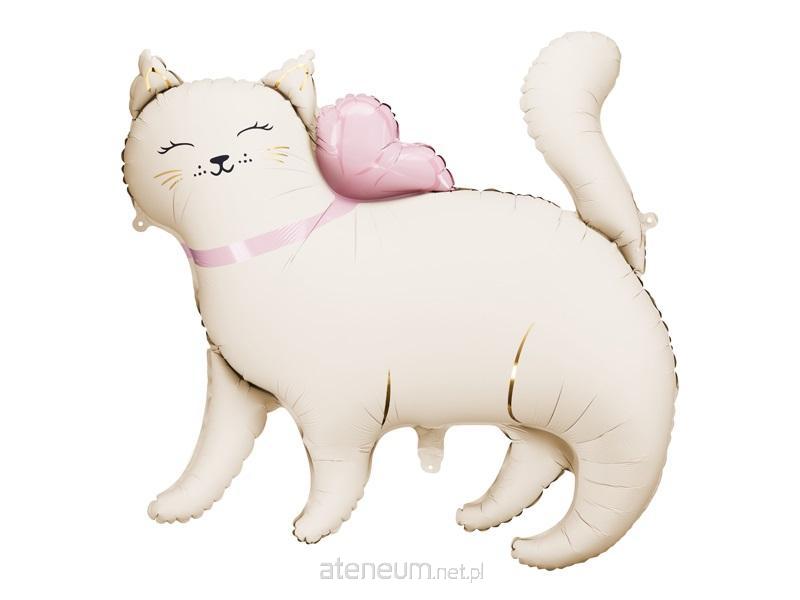 Balon foliowy w kształcie kotka, wym ok. 83 x 77 cm. Do napompowania powietrzem i helem. Zestaw zawiera słomkę