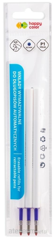 Wkłady do długopisu automatycznego, wymazywalne, 0.5mm, niebieskie, 3 szt. w etui, Happy Color