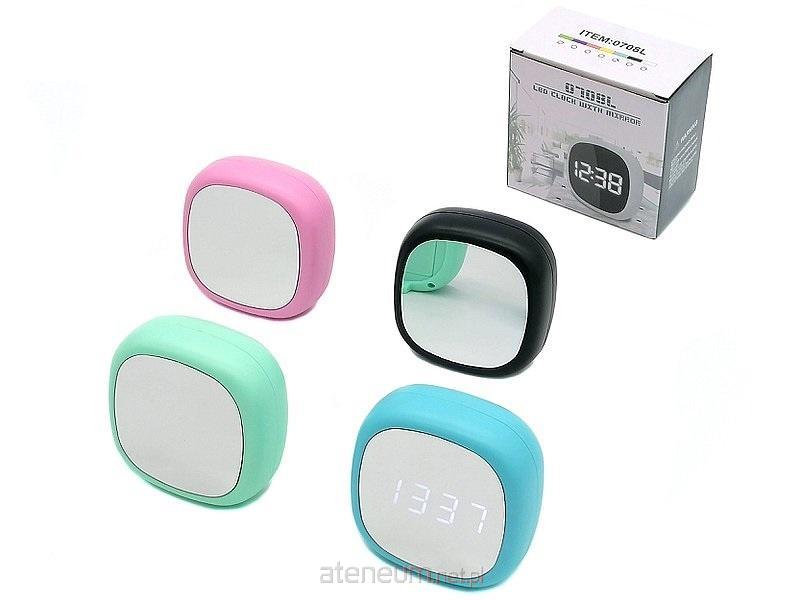 zegar - budzik, lustro z wyświetlaczem LED: godzina, data, temperatura, 7,5x7,5x4cm; Box