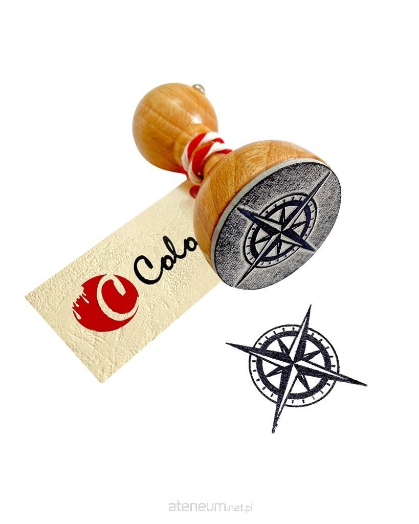 Stempel (pieczątka) w kształcie tarczy zegara do nauki kierunków geograficznych.