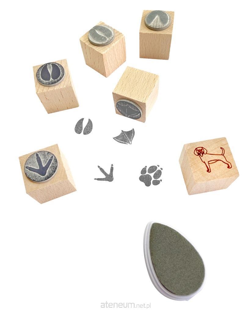Drewniane, dwustronne pieczątki z tropami zwierząt występujących na wsi. Z jednej strony stempla znajduje się postać zwierzaka a z drugiej jego trop (ślad). Pieczątki są idealnym sposobem aby zainteresować dziecko światem zwierząt.