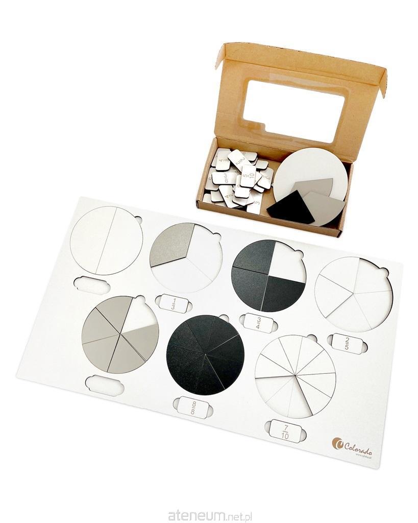 Tablica ułamkowa pozwala na naukę i utrwalanie ułamków zwykłych od drugich do dziesiątych części. Pomaga stymulować rozwój mózgu, kształtować logikę, ćwiczyć koncentrację i pamięć, a także umiejętności myślenia przyczynowo-skutkowego. Dzieci mogą dobierać części kół do podpisów, lub dopasowywać podpisy do wcześniej ułożonych elementów. Dzięki takim zabawom mają okazję również, aby poprawić chwytność palców.