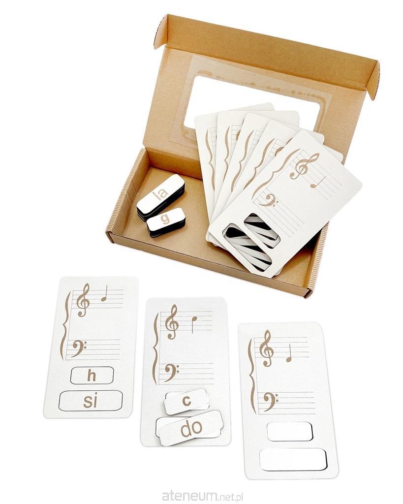Zestaw składa się z 8 drewnianych płytek wielkości 8,5 cm na 14 cm z wygrawerowaną nutą w kluczu wiolinowym.