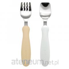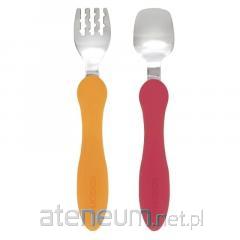 Zestaw widelców i łyżek dla dzieci numer 1 w Japonii (ponad milion zestawów sprzedawanych rocznie). Idealne do nauki samodzielnego jedzenia. Testowany w laboratorium: maksymalnie bezpieczne dla dziecka, wykonane z nietoksycznych materiałów. Kolorowe uchwyty przyborów pomagają dziecku skupić się na procesie jedzenia. Ergonomiczny uchwyt, specjalnie zaprojektowany dla małej dziecięcej ręki, sprawia, że widelec i łyżka są łatwe do uchwycenia i trzymania w różnych pozycjach. Małe rowki na zębach widelca ułatwiają uchwycenie i przytrzymanie potrawy, tak jak oczekuje tego Twój smakosz. Dzięki kątowemu kształtowi i płaskiej konstrukcji, łyżka z łatwością dotrze nawet do najtrudniej dostępnych zakątków naczyń.
