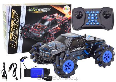 Auto Terenowe Zdalnie Sterowane RC Drift Jazda na Skos Niebieski Zdalnie sterowany samochód terenowy wspinaczkowy, który olśniewa swoim niebieskim kolorem i innowacyjnymi funkcjami. Ten pojazd jest stworzony dla wszystkich miłośników mocnych wrażeń, oferując niezrównane możliwości zarówno na torze, jak i w terenie. Dzięki zaawansowanemu systemowi kół z wałkami, nasz samochód oferuje niespotykaną dotąd skrętność i mobilność. Te specjalnie zaprojektowane koła umożliwiają pojazdowi nie tylko klasyczne skręcanie w lewo i prawo, ale również driftowanie oraz poruszanie się na skos. To innowacyjne rozwiązanie wprowadza zupełnie nowy wymiar zabawy, dając możliwość wykonywania spektakularnych manewrów i zaskakujących zwrotów akcji. Nasze auto jest wyposażone w mocny napęd, który zapewnia doskonałe osiągi w trudnym terenie. Jego zdolności wspinaczkowe i terenowe sprawiają, że każda przejażdżka staje się emocjonującą przygodą, a Ty możesz cieszyć się niezapomnianymi chwilami. Wizualne i dźwiękowe efekty to kolejny element, który wyróżnia nasze auto. Niebieskie światła LED nadają pojazdowi nowoczesny, futurystyczny wygląd, który doskonale prezentuje się zarówno w dzień, jak i w nocy. Dodatkowe efekty dźwiękowe podkreślają realizm i intensyfikują wrażenia z jazdy, przenosząc Cię w świat pełen akcji i emocji. Samochód oferuje dwa tryby sterowania, co czyni go jeszcze bardziej wszechstronnym. Tradycyjny pilot zdalnego sterowania zapewnia precyzyjne i intuicyjne kierowanie, idealne dla tych, którzy preferują klasyczne rozwiązania. Dla poszukiwaczy nowych technologii i innowacyjnych metod zabawy, przygotowaliśmy opaskę na rękę, która umożliwia sterowanie pojazdem za pomocą gestów. Wystarczy założyć opaskę i poruszać ręką, aby kontrolować ruchy auta, co dodaje zabawie interaktywności i nowoczesności. Auto zasilane jest na akumulator 3.7V/1300mAh, który jest elementem zestawu. Do akumulatora dołączona jest ładowarka. Pilot zasilany jest na baterie 2x 1.5V AA, które nie są elementem zestawu. Wymiary auta: 28cm x 21cm x 11,5cm Wymiary opakowania: 35cm x 25cm x 14,5cm Posiada certyfikat CE, ponadto jest zgodny z normą EN71. Przeznaczony dla dzieci powyżej 3 roku życia.