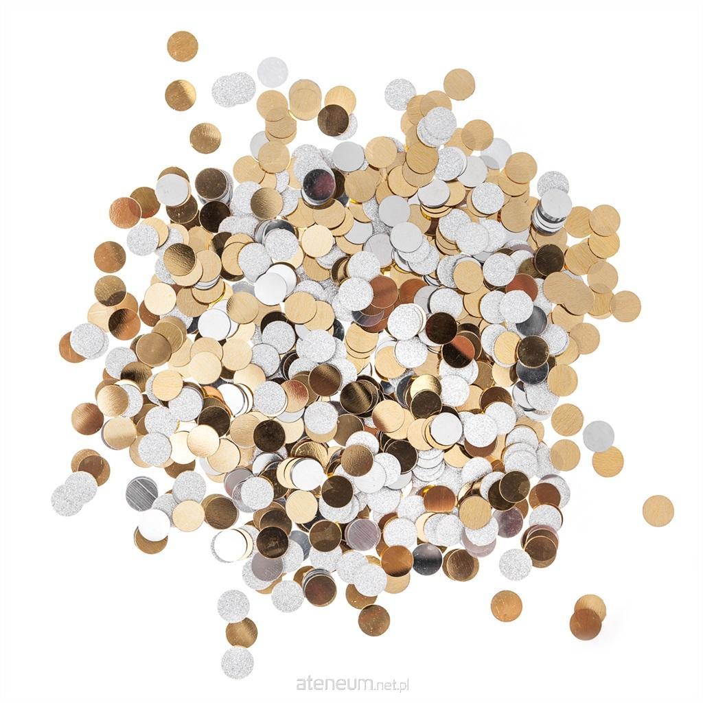 Srebrno-złote, okrągłe confetti to świetny dodatek do wszelkich projektów rękodzielniczych.