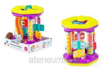 Jedna zabawka, w której kryje się cała masa atrakcji dla bobasa! Na każdej ze ścianek Rolusia znajduje się inna zabawa, aktywizująca małe rączki. Znajdziemy tu kwiatek do przesuwania, obrazki zwierzątek do obracania, grzechotki, bezpieczne lusterko, a nawet zjeżdżalnie z koralikami. Wszystkie te ruchome i grzechoczące elementy mają za zadanie jak najlepiej stymulować zmysły maluszka, zachęcając go przy tym do aktywnej, sensorycznej zabawy!