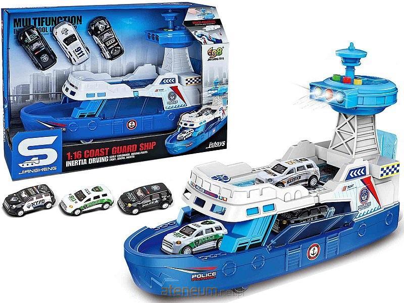 prom morski 1:16, z autami, z napędem na koło zam, światło, dźwięk; 32x22,5x13cm, W/B