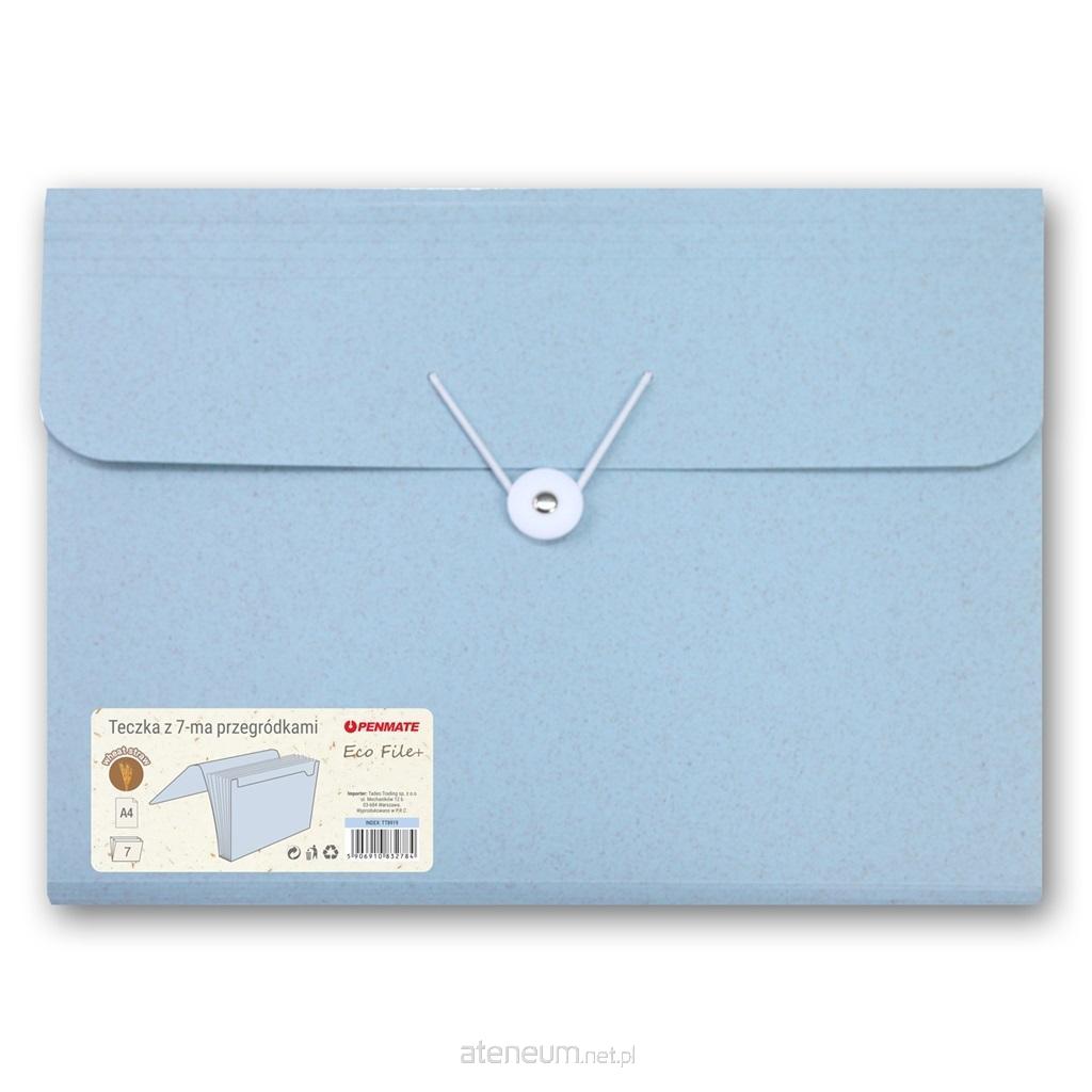 pszenicznej. Kreatywny, nowy materiał ma właściwości i zalety podobne do tradycyjnych tworzyw sztucznych. Grubość tworzywa na zewnątrz 0,6 mm, wewnątrz kolorowe przegródki o grubości 0,15 mm wykonane również z materiału zawierającego słomę pszeniczną. Wymiary: 235x325x30 mm. Teczka pakowana pojedynczo w woreczek foliowy.