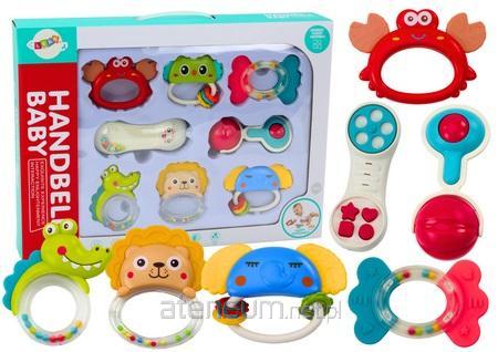 Zestaw Zabawek Grzechotek Gryzaków Zwierzątka 8 Sztuk Zestaw grzechotek dla malucha to niezwykła kolekcja zabawek, która nie tylko bawi, ale i wspiera rozwój najmłodszych dzieci na wielu poziomach. Każda z grzechotek jest starannie zaprojektowana w kształcie uroczych zwierzątek, co nie tylko przyciąga wzrok malucha, ale też pobudza jego ciekawość i eksploracyjne dążenia. Każda z grzechotek posiada różnorodne sensoryczne elementy. Grzechoczące części angażują słuch dziecka, zapewniając przyjemne dźwięki podczas potrząsania zabawką. Dodatkowo, koraliki do przesuwania na grzechotkach rozwijają zdolności manualne i koordynację ruchową, zachęcając do eksperymentowania i poznawania różnych tekstur. Wykonane z gumowych elementów zakończenia grzechotek nie tylko zwiększają bezpieczeństwo, ale także pełnią funkcję gryzaków, co jest szczególnie istotne podczas etapu ząbkowania dziecka. Dzięki nim maluch może bezpiecznie i komfortowo eksplorować świat wokół siebie, mając jednocześnie niezbędne wsparcie w łagodzeniu objawów związanych z ząbkowaniem. Zestaw grzechotek nie tylko stymuluje rozwój fizyczny i sensoryczny dziecka, ale również wspiera jego rozwój emocjonalny poprzez dostarczanie satysfakcjonujących doznań związanych z manipulowaniem zabawkami. To również doskonały sposób na budowanie więzi pomiędzy rodzicem a dzieckiem podczas wspólnej zabawy. Każda grzechotka jest starannie wykonana z myślą o bezpieczeństwie i komforcie dziecka, zapewniając nie tylko rozrywkę, ale i wsparcie w zdrowym rozwoju malucha. To idealny wybór dla rodziców poszukujących zabawek, które nie tylko bawią, ale i uczą, wspierając rozwój małych odkrywców. Wymiary opakowania: 45cm x 33cm x 7cm Posiada certyfikat CE, ponadto jest zgodny z normą EN71. Przeznaczony dla dzieci od pierwszych miesięcy.