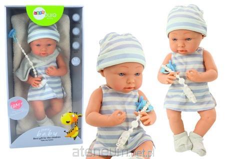 Lalka Bobas w Biało-Niebieskim Ubranku Czapeczka Smoczek Śliniaczek Kołderka Lalka bobas w Biało-Niebieskim ubranku to więcej niż tylko zabawka - to towarzyszka, która wprowadza dzieci w magiczny świat wyobraźni i opiekuńczych przygód. Ubrana jest w Biało-Niebieskie ubranko, śliniaczek, skarpetki i dopasowaną czapeczkę co nadaje jej niepowtarzalny urok. Ruchome rączki i nóżki umożliwiają dziecku interaktywną zabawę, rozwijając jego zdolności manualne i kreatywność. Wykonana z najwyższej jakości, bezpiecznych materiałów, lalka posiada realistyczne rysy twarzy, dzięki czemu wygląda jak prawdziwe niemowlę, co dodaje autentyczności i głębi do dziecięcych doświadczeń. Dodatkowo, obecność smoczka na sznurku i mięciutkiej kołderki dodają realizmu i zachęcają do tworzenia różnorodnych scenariuszy zabawy. Ta lalka nie tylko bawi, ale również rozwija empatię i odpowiedzialność u dzieci, ucząc je troski i opieki nad innymi. Daje możliwość przeżywania magicznych chwil, w których dzieci mogą się czuć jak prawdziwi opiekunowie, budując silne więzi emocjonalne i rozwijając swoje umiejętności społeczne. Towarzyszka, która nie tylko bawi, ale także inspiruje i wspiera w rozwoju dziecięcej wyobraźni i kreatywności. Wymiary lalki: 42cm x 18cm x 10cm Wymiary opakowania: 47,5cm x 26cm x 14,5cm Posiada certyfikat CE, ponadto jest zgodny z normą EN71. Przeznaczony dla dzieci od 18 miesiąca życia.